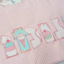עיצוב שם התינוק ושוליי השמיכה לבחירתכם מתמונות המופיעות בעמוד זה או ממגוון הבדים הקיים בקטלוג הבדים באתר.