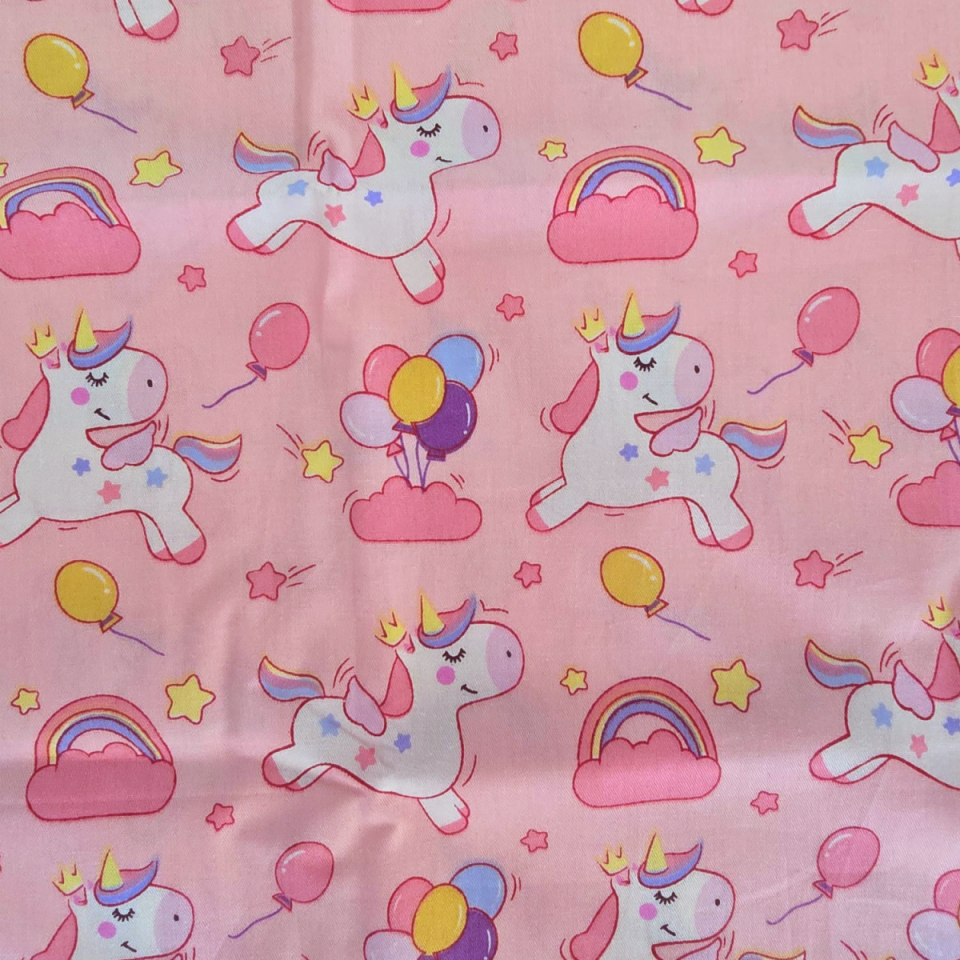 בד חד קרן קשת וענן ובלונים רקע ורוד