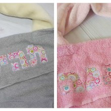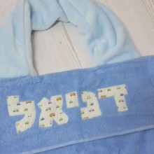 מדובר במתנה מוצלחת ביותר , גם מכיוון שהיא מקלה על ההורים בעת ביצוע המקלחת והניגוב בעזרת רצועת הצוואר והכובע , וגם מכיוון ששם הילד/ה תפור עליה ממגוון בדים מתוקים .